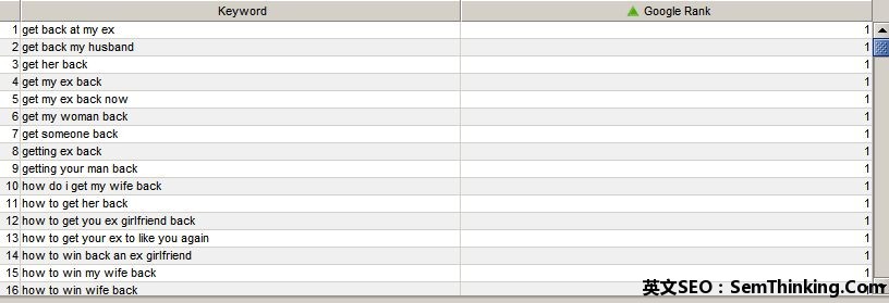 该产品是介绍ex back之类的电子书,所以整个通过获取商家页面所得到的关键词也基本都是围绕着ex back的。
