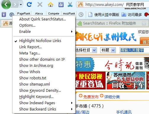 这里只列举了自己常用的几款SEO插件,其实Firefox此类插件非常之多,要想排除名词基本不肯那个,具体哪一款合适您,就得自己摸索使用了,当然,第一步您得先安装Firefox咯!