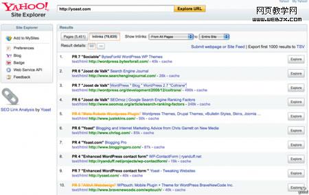 从Google Webmaster Tools和 Yahoo! Site Explorer这两个权威工具里获得页面的反向链接数据,同时会显示连接页面的PR值,链接锚文字,以及是否是nofollow等信息!这对分析自己站点的反向链接非常有用!具体看下图: