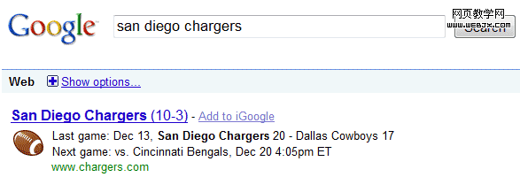 Google和Bing都将在提高用户粘着度方面做很多工作,同时让用户不用离开搜索引擎就能获得答案。对这两个公司来说,这都是一种好的产品体验,并且我很惊奇Google花了很长时间放弃“让人们离开Google网站(get people off Google)”的观点,但最终还是发生了。看看下面的例子。