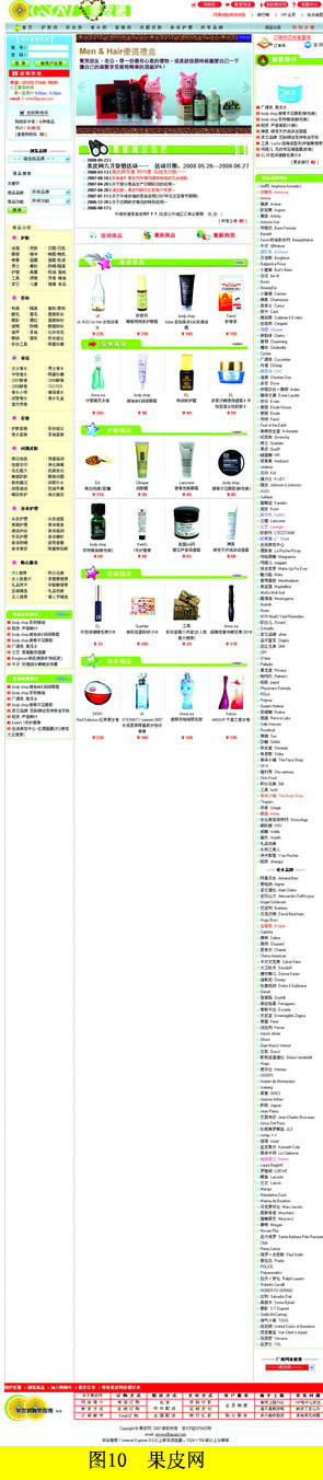 如果不是追求艺术美感和试验性的特殊网站,无论设计师想表达的东西是多么新颖多么富有创意,假如把网站头部设计得很复杂很难以理解,进而影响了用户的操作,那么它就很难成为一个优秀的网站。例如以下几个网页,在设计中就存在着一些因为不够重视交互性和用户体验而存在的问题:如图9,湖南省人民政府网站,所有同级内容无区分重复堆砌,容易让人视觉疲劳;图10,知名女性用品网站果皮网,右侧列表过于冗长,用户体验极差;图11,Sandisk中国总代宏衢网站,在简单的页面上采用了过多的烦琐的图片设计。