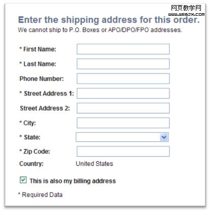 3、尽量左对齐文本和字段区域。访客一般从左侧来找到一行文本的起始端,右对齐的格式就让人很难定位一行的开始,这会明显增加表单的复杂性。左对齐的表单字段区域更能让人从视觉上掌握整个布局,从而利于快速浏览。