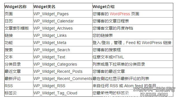 WordPress自带的Widget代码是写在/wp-includes/default-widgets.php中。此文件中每个类对应一个小工具,如修改 RSS 样式(来自任何 RSS 或 Atom feed 的条目),只要找到 WP_Widget_RSS 这一类修改即可。以下是功能即与名称对照表: